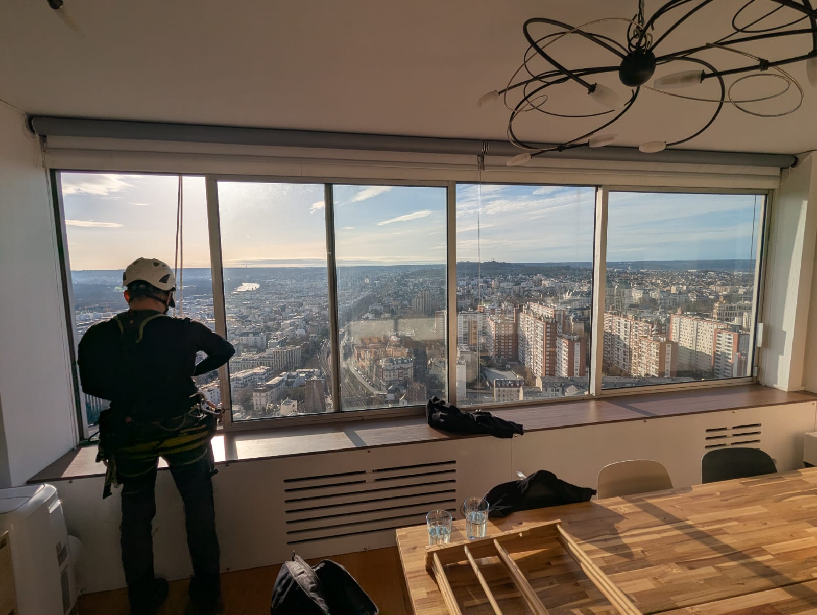 Ce type d’opération illustre parfaitement notre savoir-faire en travaux en hauteur, interventions sur façades vitrées, mur rideau et ouvrages complexes d’accès difficile, au service des immeubles de grande hauteur et des bâtiments tertiaires.